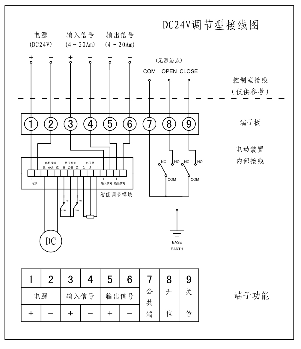 DC24V調(diào)節(jié)型電動(dòng)蝶閥接線圖(4-20mA)